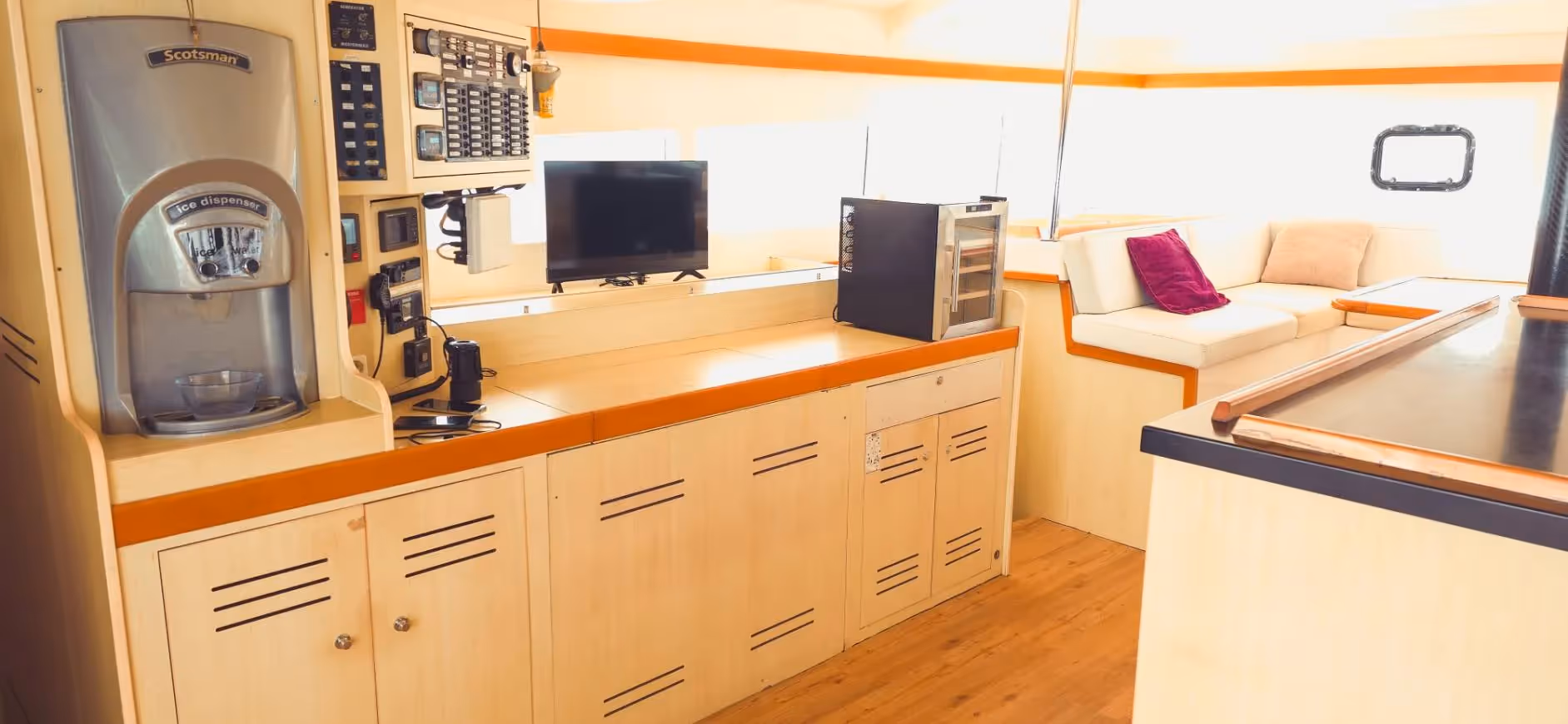 This exquisite sailing catamaran Catlante 60ft offers a comfortable space for relaxation and entertainment on board. A saloon with panoramic views, spacious cabins, an equipped kitchen and any necessary sailing equipment make it ideal for a family vacation, with friends or for a romantic getaway.