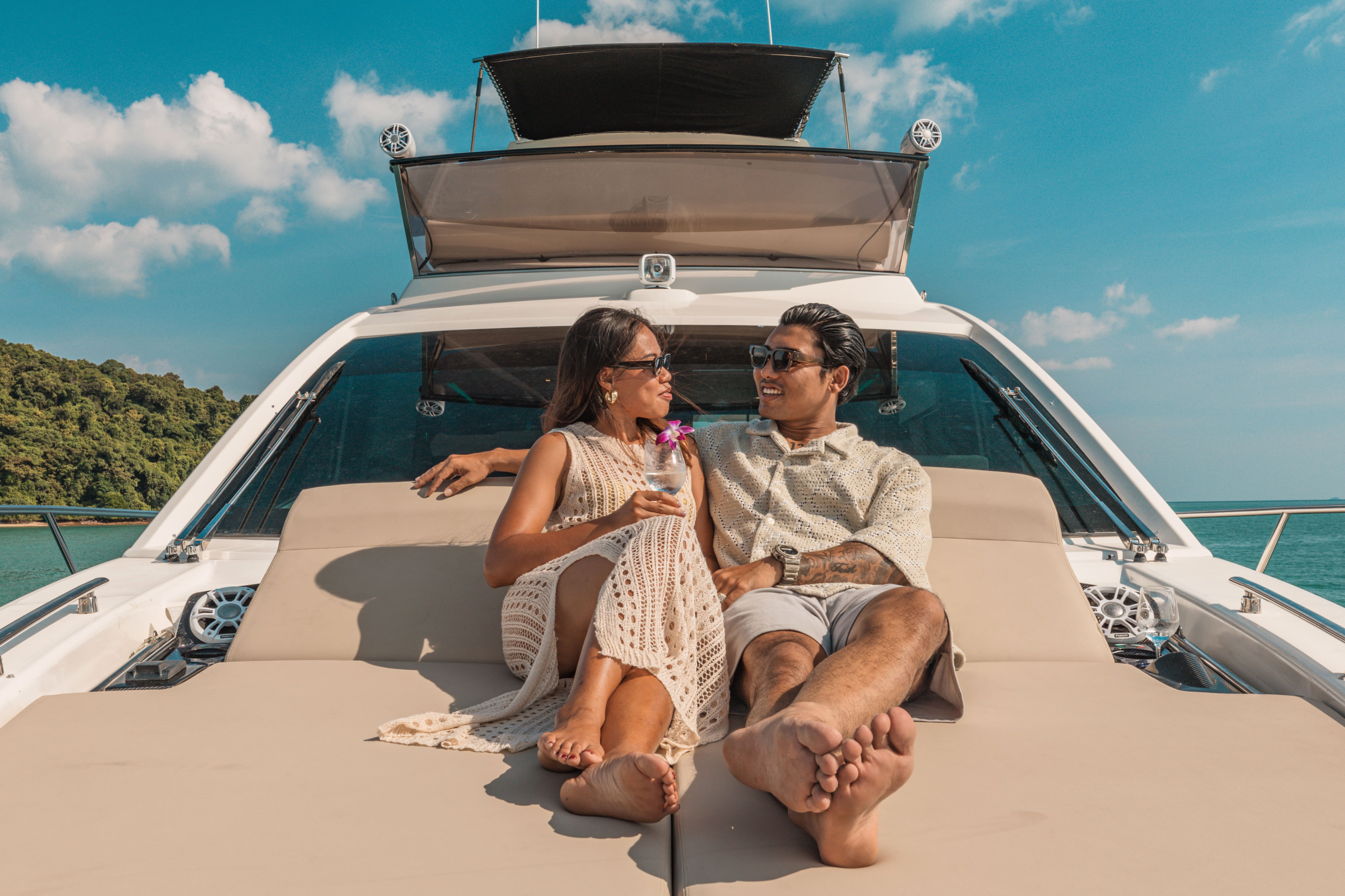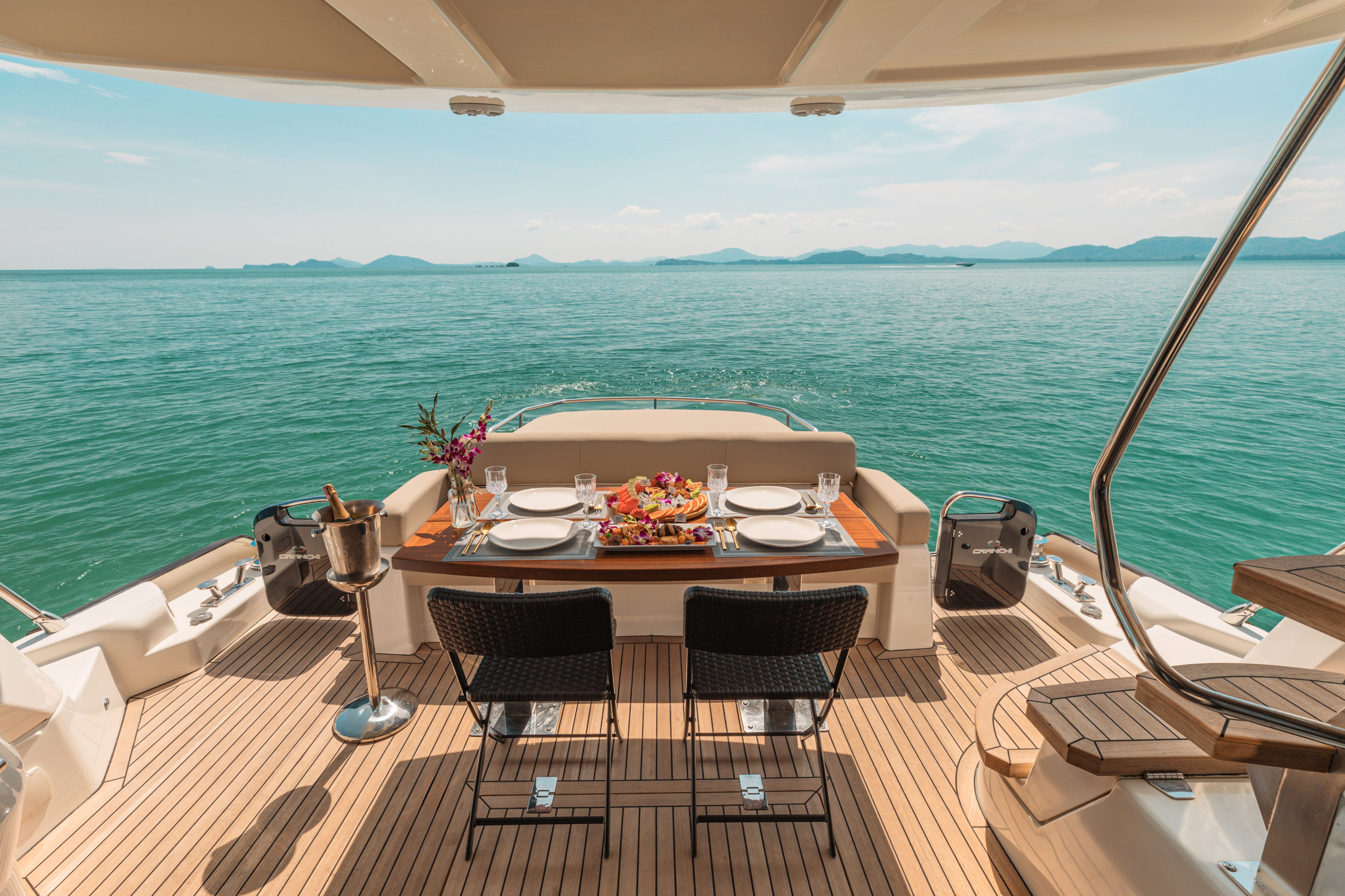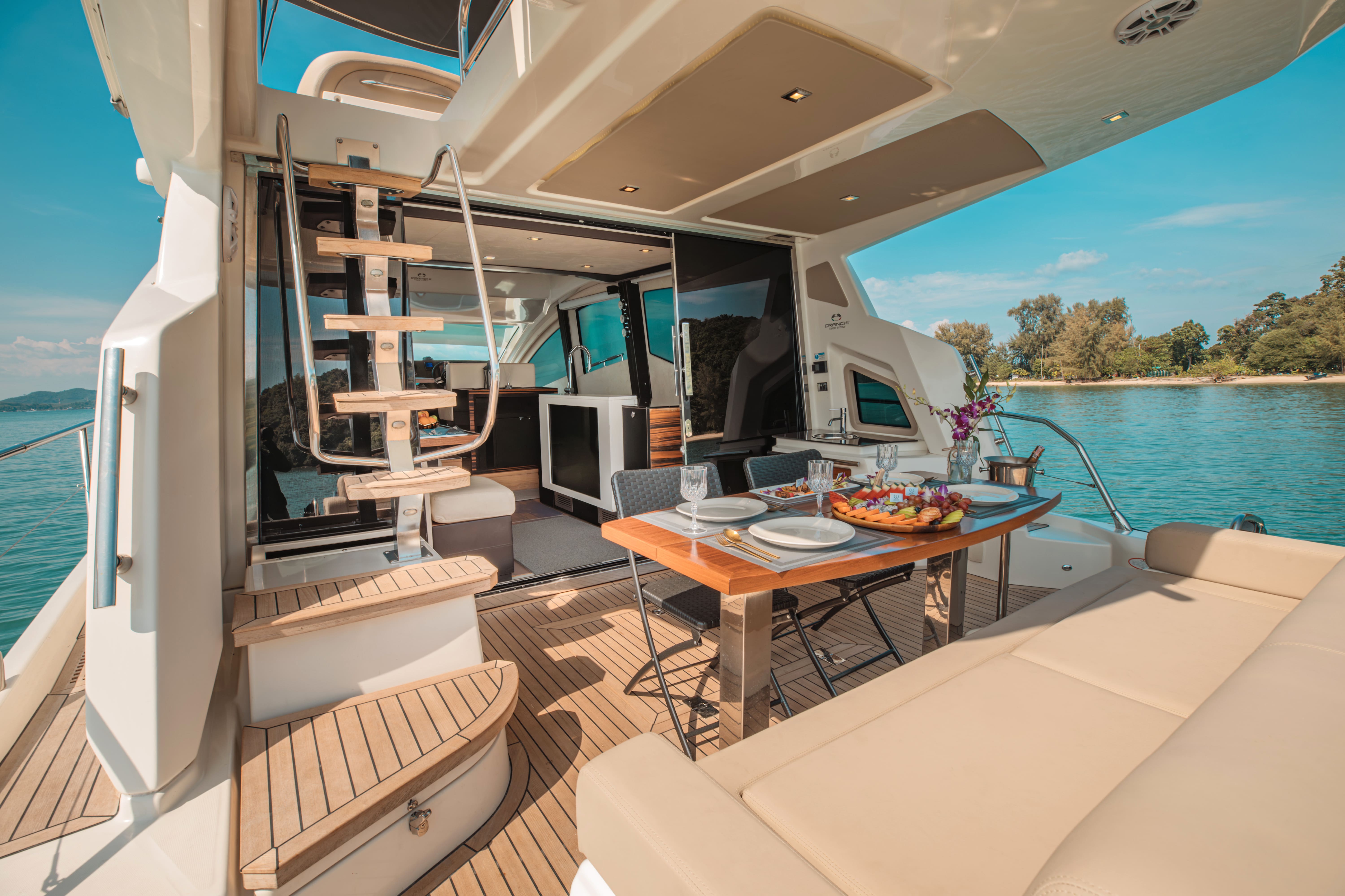The Cranchi 58ft “Scenery” is a stunning Italian-built flybridge yacht, newly introduced to the Thailand charter fleet after a full refit in 2024. Perfect for day trips or overnight cruising around Phuket, Krabi and the Andaman Sea, this yacht combines stylish design with comfort and adventure.