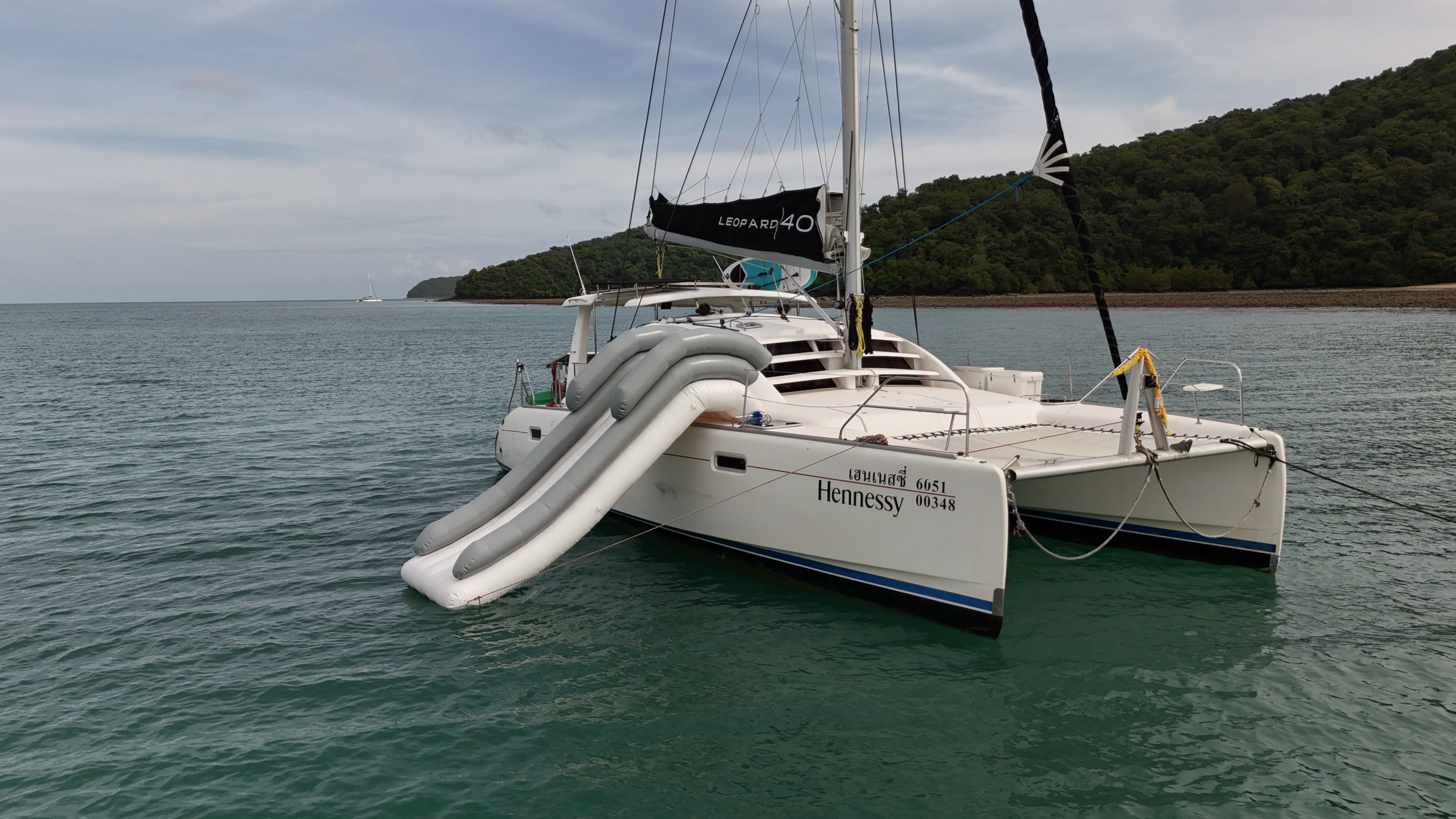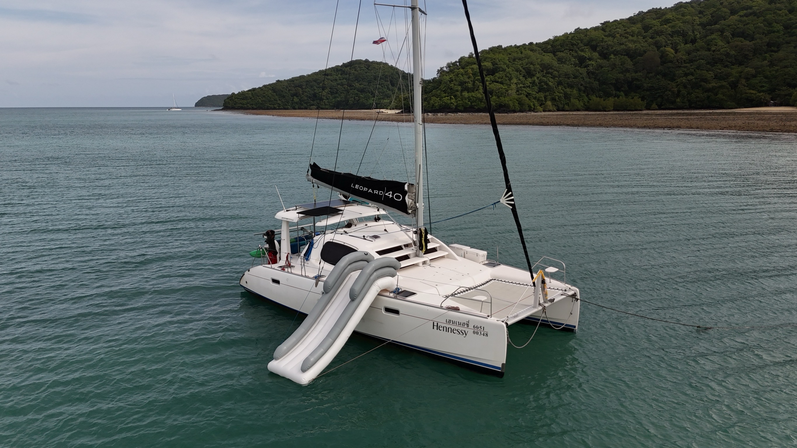 Leopard 40ft sailing catamaran is a premium sailing vessel with a spacious deck and cozy cabins that will allow you to enjoy a comfortable sailing around Phuket islands. This catamaran is ideal for both family vacations and romantic trips for two.