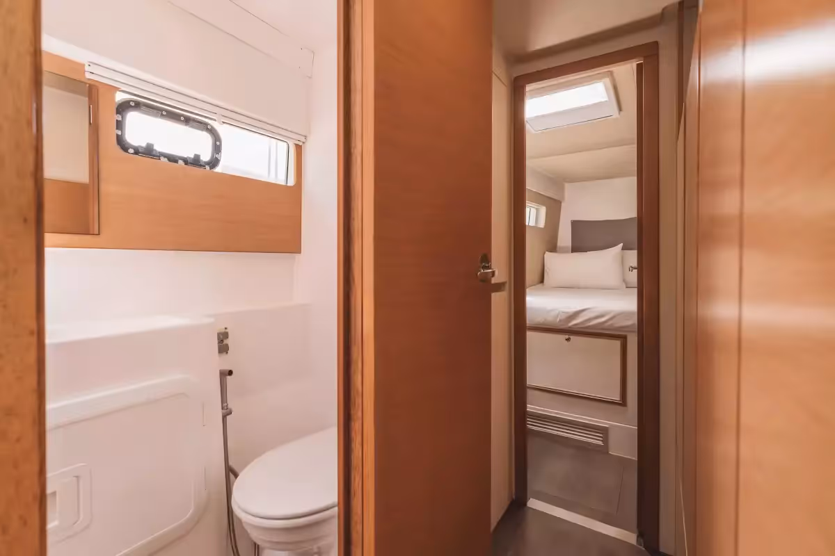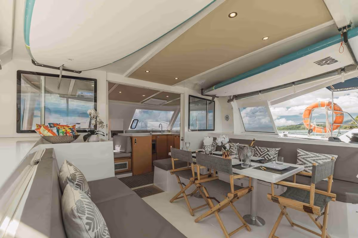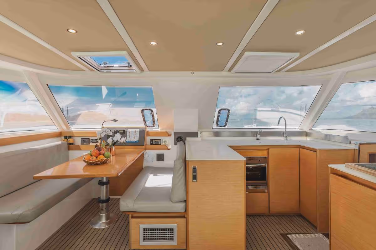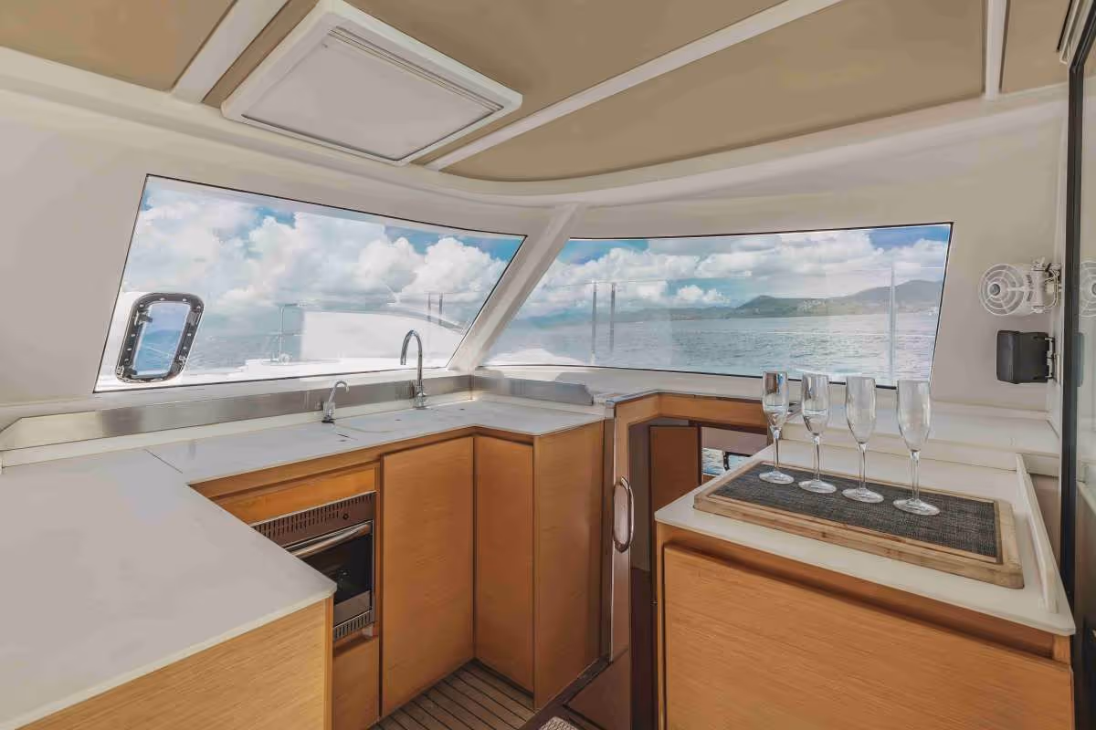 With a sleek 40-foot design and stable twin-hull layout, the Nautitech offers generous deck space for relaxing, sunbathing, or enjoying panoramic sea views. Down below, you’ll find four cozy cabins and comfortable sleeping accommodations for up to 8 guests, making multi-day voyages a true pleasure.