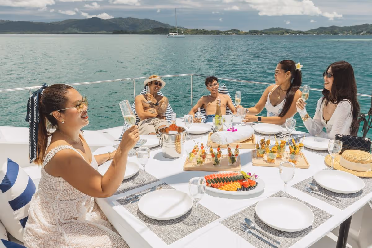 With its sleek twin-hull design and generous deck space, the Satisfaction 55ft offers exceptional stability and plenty of room for relaxation and activities, even in lively seas. Whether you’re cruising between tropical islands or soaking up a Phuket sunset, every moment onboard feels effortless and luxurious.